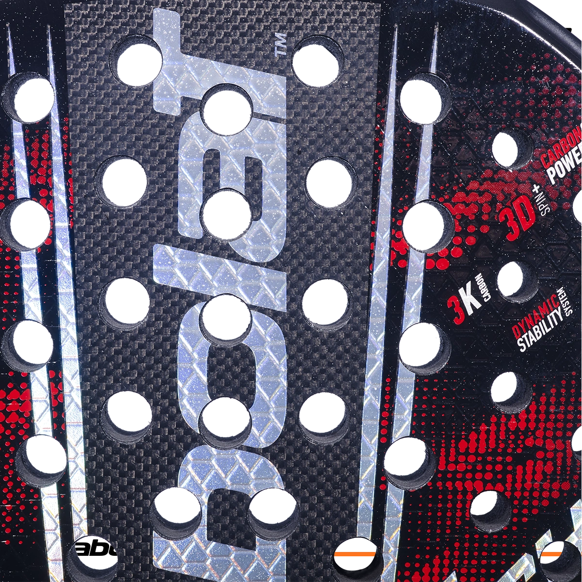 Fibre de carbone tissée utilisée sur la surface de la raquette pour donner une explosivité et une précision maximales.