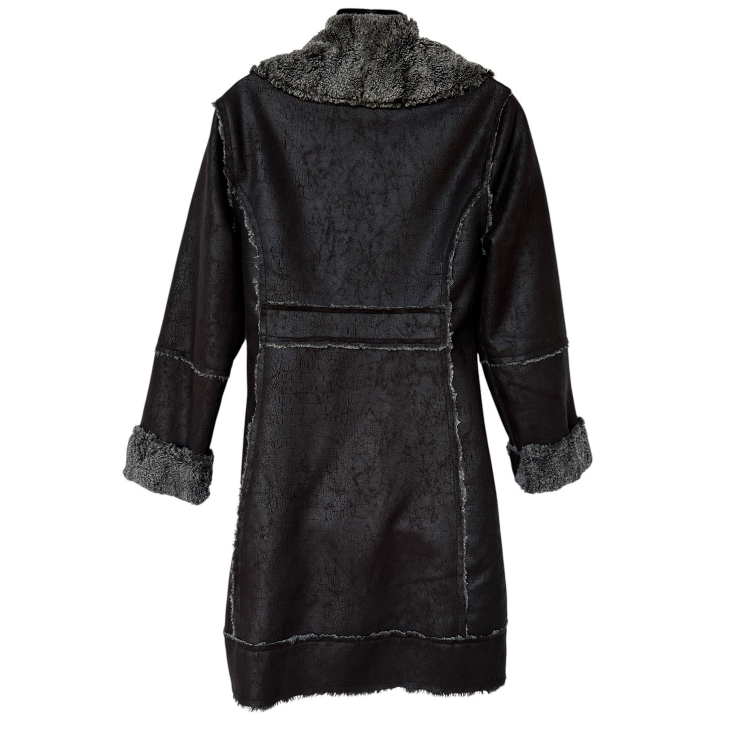 dylan Trench Coat Brown Gray Faux Leather Faux Fur Women's Size Small