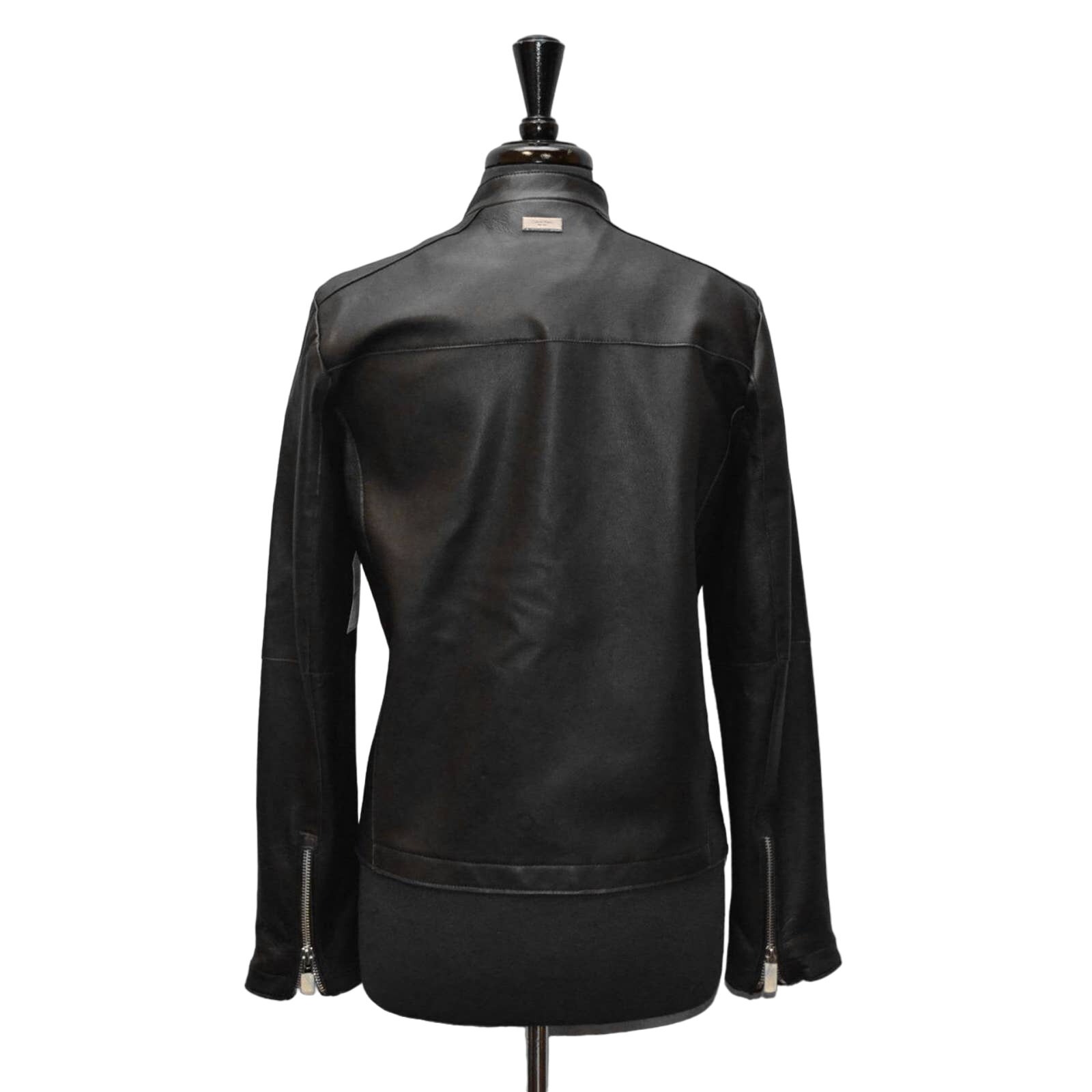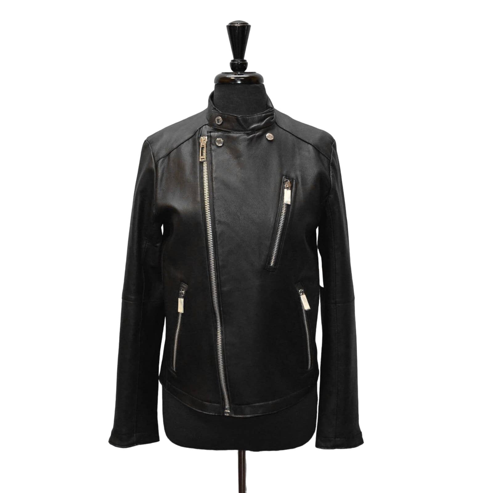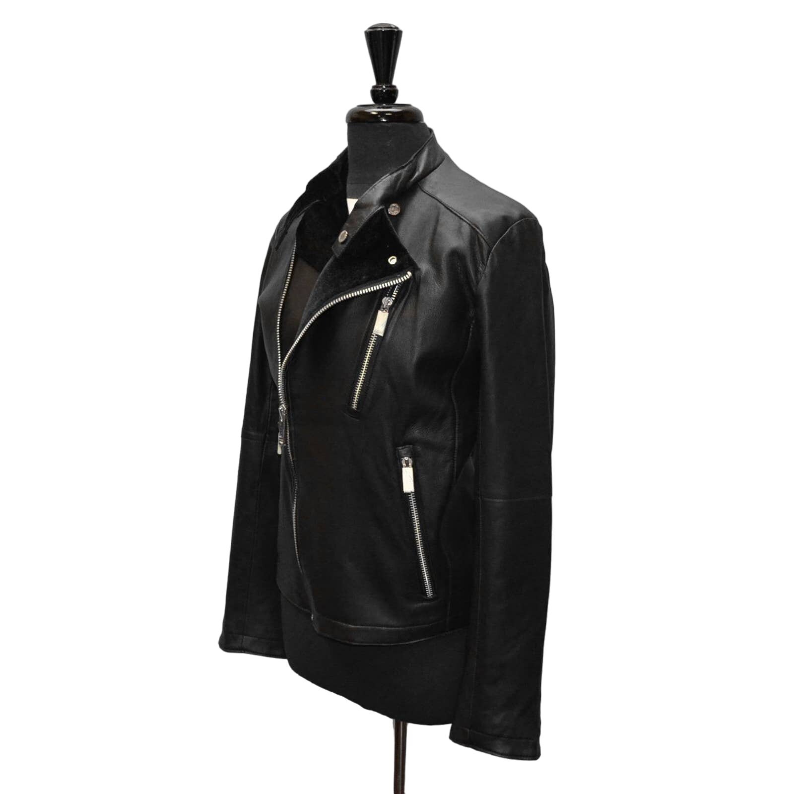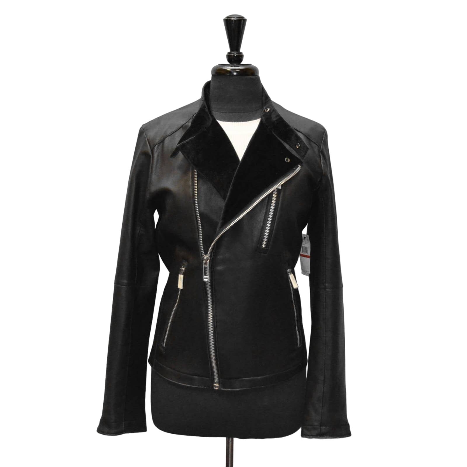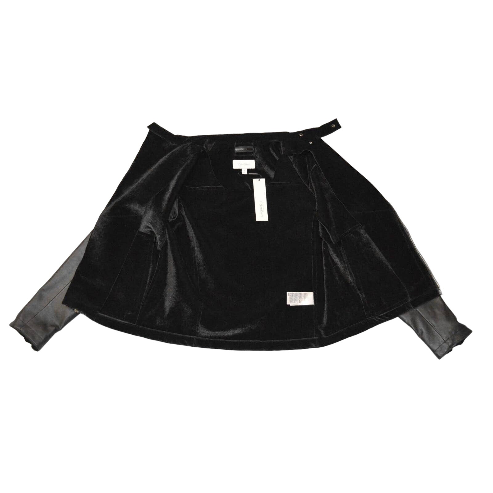 NEW AUTHENTIC CALVIN KLEIN Black Leather Velvet Lining Asymmetric Zip Moto Jacket