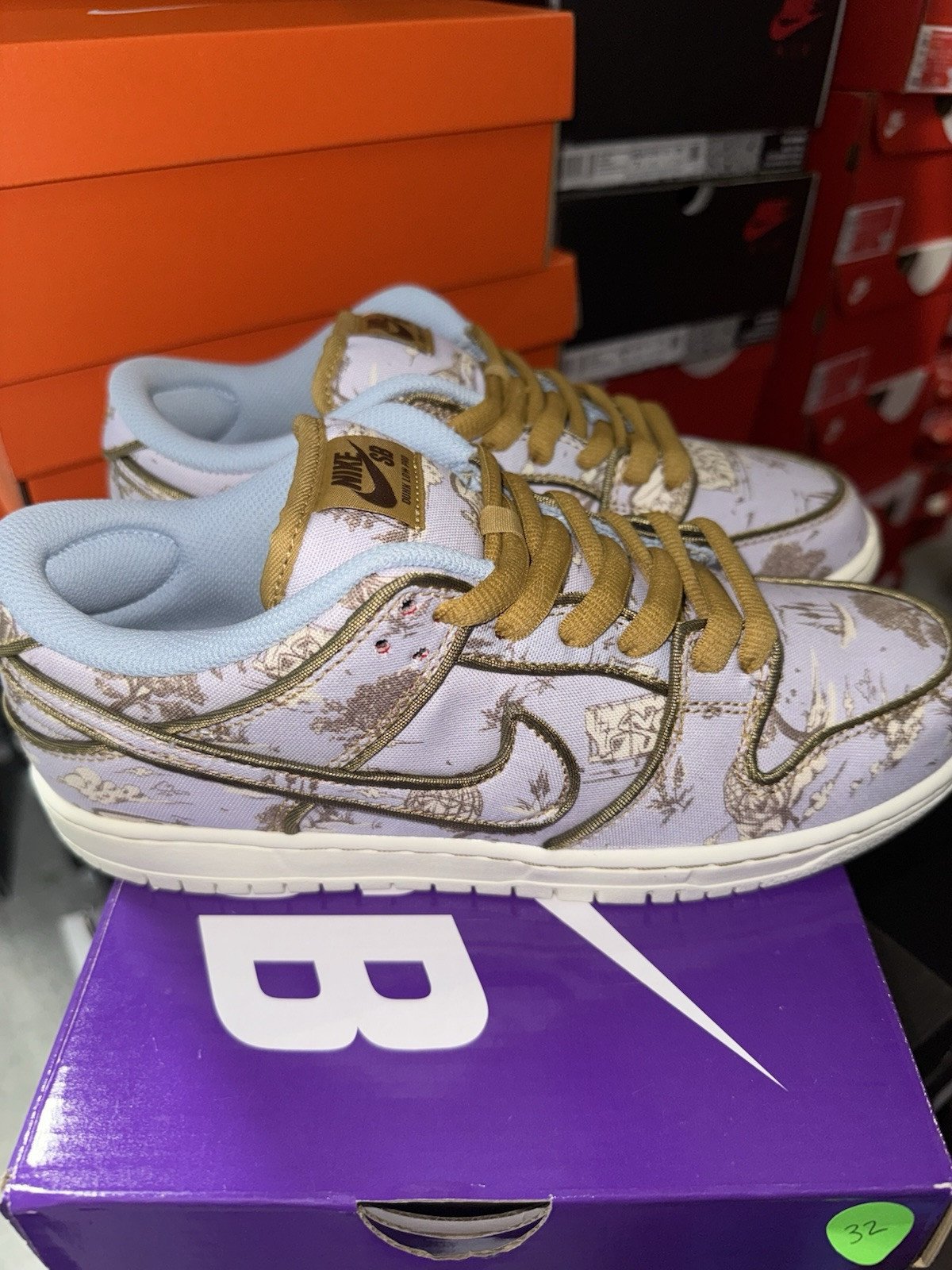 This Nike SB Dunk Low PRM Premium City Of Style sneaker in size 8 for men is a limited edition release from 2024. The shoe features a Football Grey/Coconut Milk colorway with a City theme, perfect for activewear, casual, or workwear occasions. Made with fabric upper material and a standard shoe width, this sneaker is designed for skateboarding performance and showcases a low top style with a stylish City-inspired design. Ideal for the Summer, Fall, and Spring seasons, this Nike SB Dunk is a fashionable and functional addition to any sneaker collection.