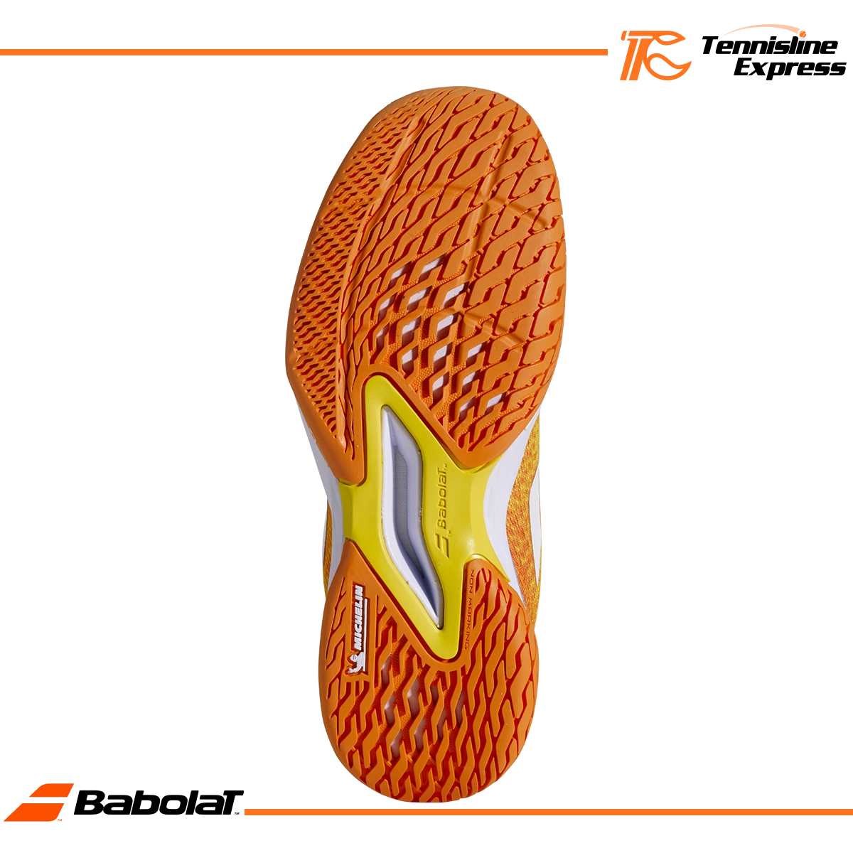 La semelle a été repensée pour répondre plus précisément aux sollicitations du jeu : la surface de la sculpture a été augmentée dans les zones les plus sollicitées en abrasion et allégées dans les zones les moins sollicitées. La semelle JET MACH 3 Jr associée à la technologie Michelin offre ainsi une durabilité accrue pour réduire l’usure et l’abrasion liés aux déplacements spécifiques du tennis.