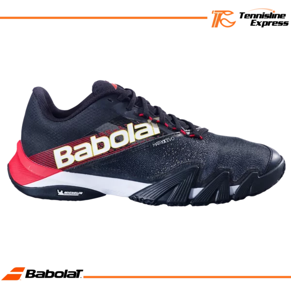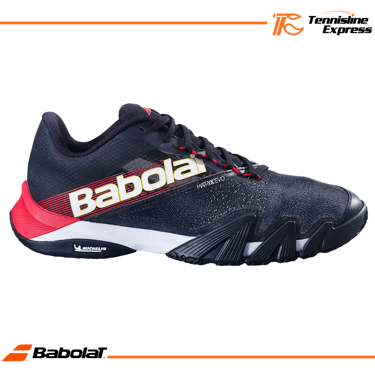 Matryx est un tissu exclusif et breveté, développé en étroite collaboration par Babolat et Chamatex, expert en tissus techniques. La version EVO est tissée grâce au process jacquard qui permet de conserver le système « Stability arch », les fibres d’Aramide et de Polyamide haute ténacité. En revanche le diamètre des fils a été adapté et les mono-filaments supprimés pour une souplesse/flexibilité et un confort accrus. La technologie Matryx® EVO a été conçue pour offrir le meilleur compromis entre confort, maintien et durabilité.