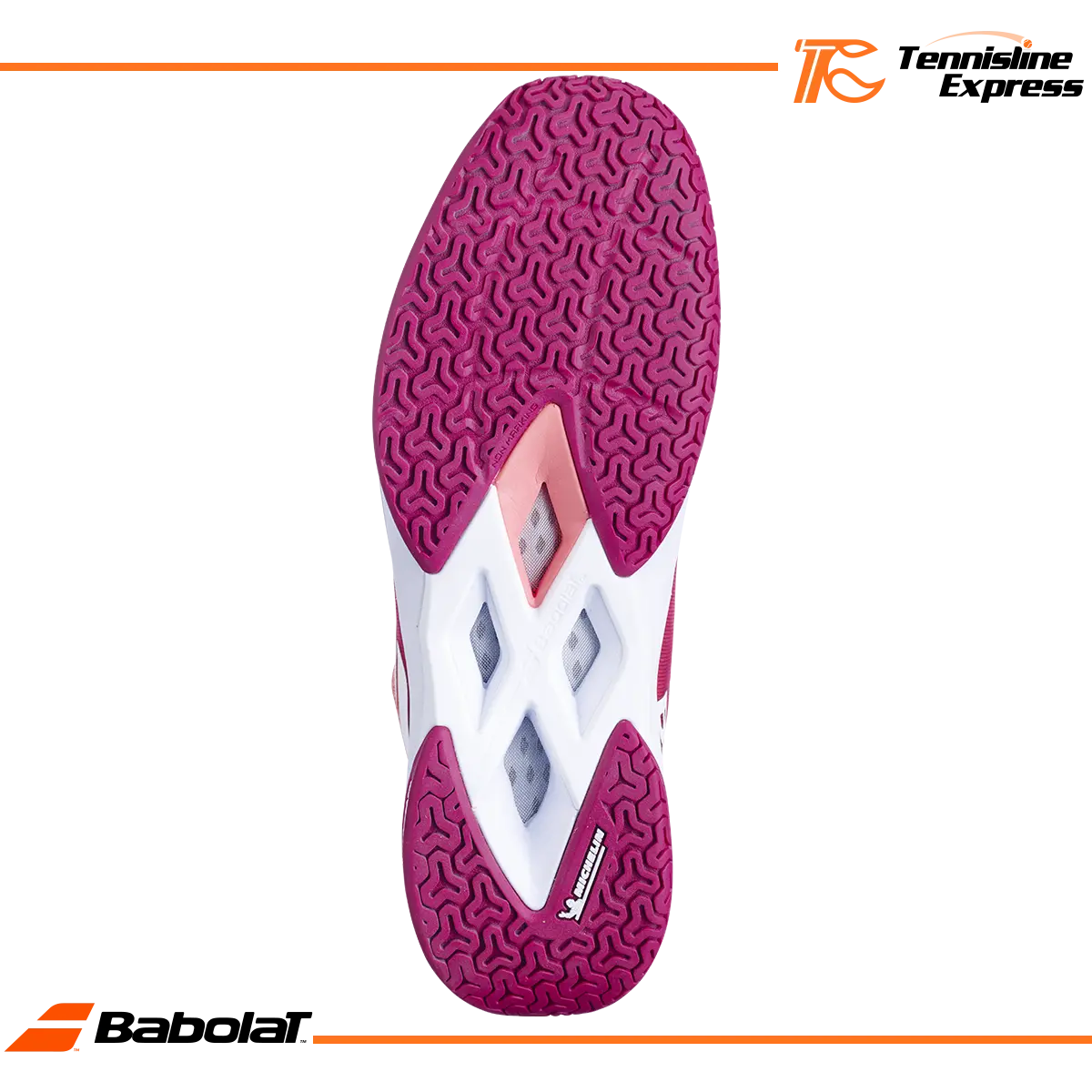 Le caoutchouc Michelin a été développé spécifiquement pour le badminton pour offrir le meilleur compromis accroche, durabilité sur tous les types de terrains indoor. Une pièce de protection en caoutchouc très résistante recouvrant l’avant interne du pied jusqu’aux orteils pour une durabilité de la tige incomparable.